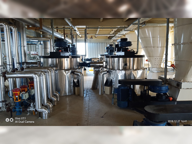 Cooling is done using a re-circulating type Water Cooling System combined with Air Cooling. Water is cooled again using an external cooling tower of required capacity. Additives mixing of ingredients like Edible Oil, Sugar, Vitamins & Minerals, Flavoring Agents etc. is done in high efficiency Vertical Mixers. Weigh-metric or Volumetric both types of controls are possible for blending the additives.