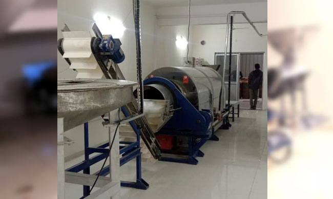 JAINUM- JFW-RR Series Rotary Roasters are designed for Roasting and Drying Seeds, Gram, certain spices, and other miscellaneous items not suitable for JFW-R vertical roasters. JFW -RR can also be used for drying or roasting of Semolina (Suji). JFW-RR is heated by using Gas or Diesel fired burner. These Rotary Roasters are available in both Continuous or Batch type of operating systems. Multi-pass Rotary Roasters are also available and are designed as per the requirement of a product. These Roasters have unique lifting and cascading system ensuring homogeneity of operations during drying or roasting. Further, it reduces the possibility of charring of products.
