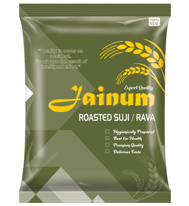 Jainum offers range of Roasted / Dried / Regular products including products like Semolina (Suji), Fine Semolina (Rava), Roasted Dalia, etc. Products are available in 500gm, 1 Kg, 25 Kg and 50 Kg packs.